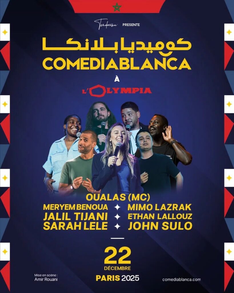 Après avoir conquis le cœur de plus de 11 000 spectateurs au Maroc, Comediablanca pose ses valises à Paris et inaugure sa tournée internationale sur la scène mythique de l’Olympia.